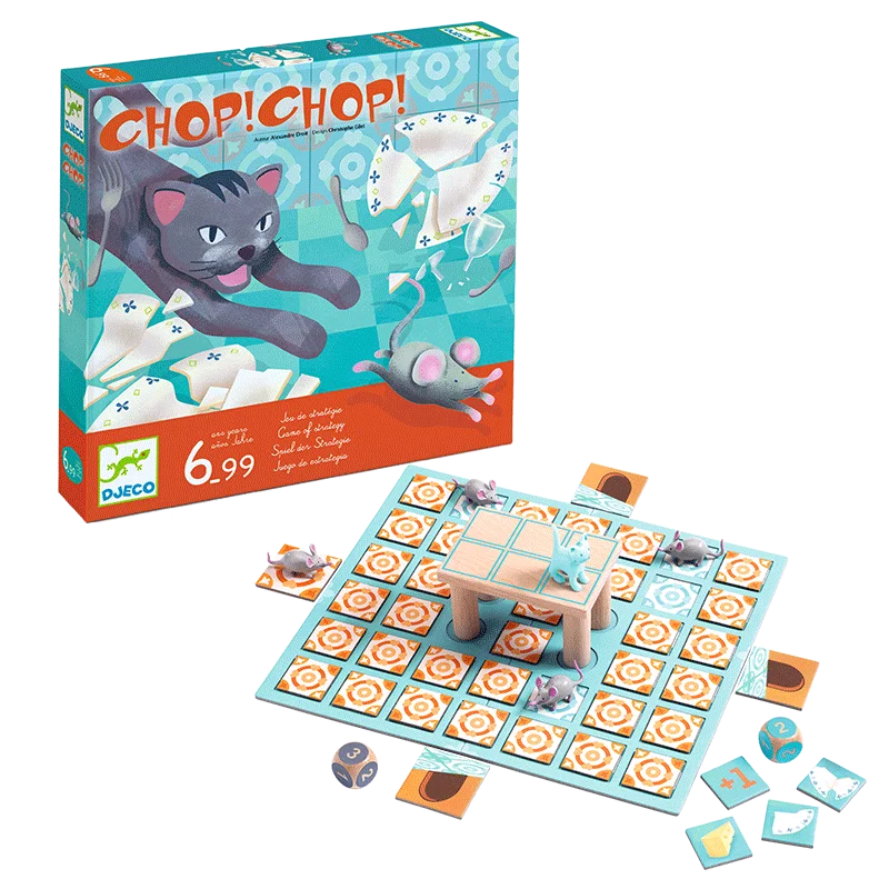 在《猫抓老鼠》中,老鼠在桌下根据规则移动,猫则在桌上移动,根据停留处的卡片做出对应动作,若老鼠在猫咪全部抓住之前集齐10块奶酪,则老鼠方获胜,若猫咪在老鼠集齐奶酪前抓住4只老鼠,则猫咪放获胜